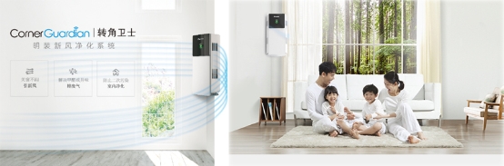 大金轉角衛士明裝新風凈化系統,能起到引新風、排廢氣、室內凈化三效合一的效果,讓裝修好的房子也可以愛上“宅”家。